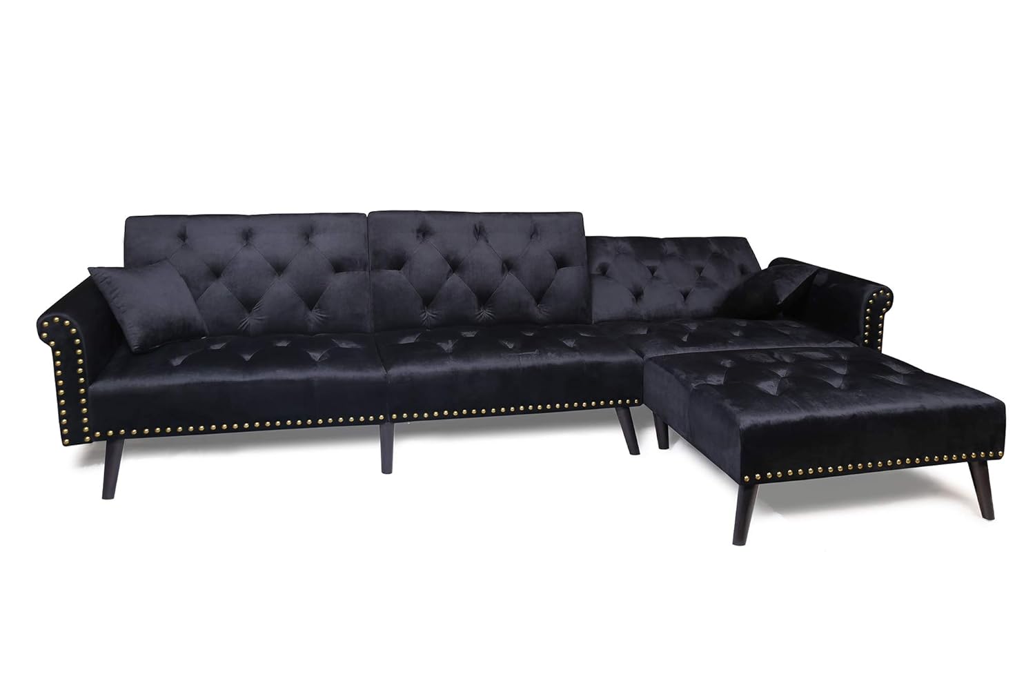 Black Sectional Sofa Sleeper Bed Julyfox 900 Lb Heavy Duty 115 Inch 3 Seater Sectional Sofa W Chaise Velvet Sofa Futon Modern Day Bed W Nail Head Trim