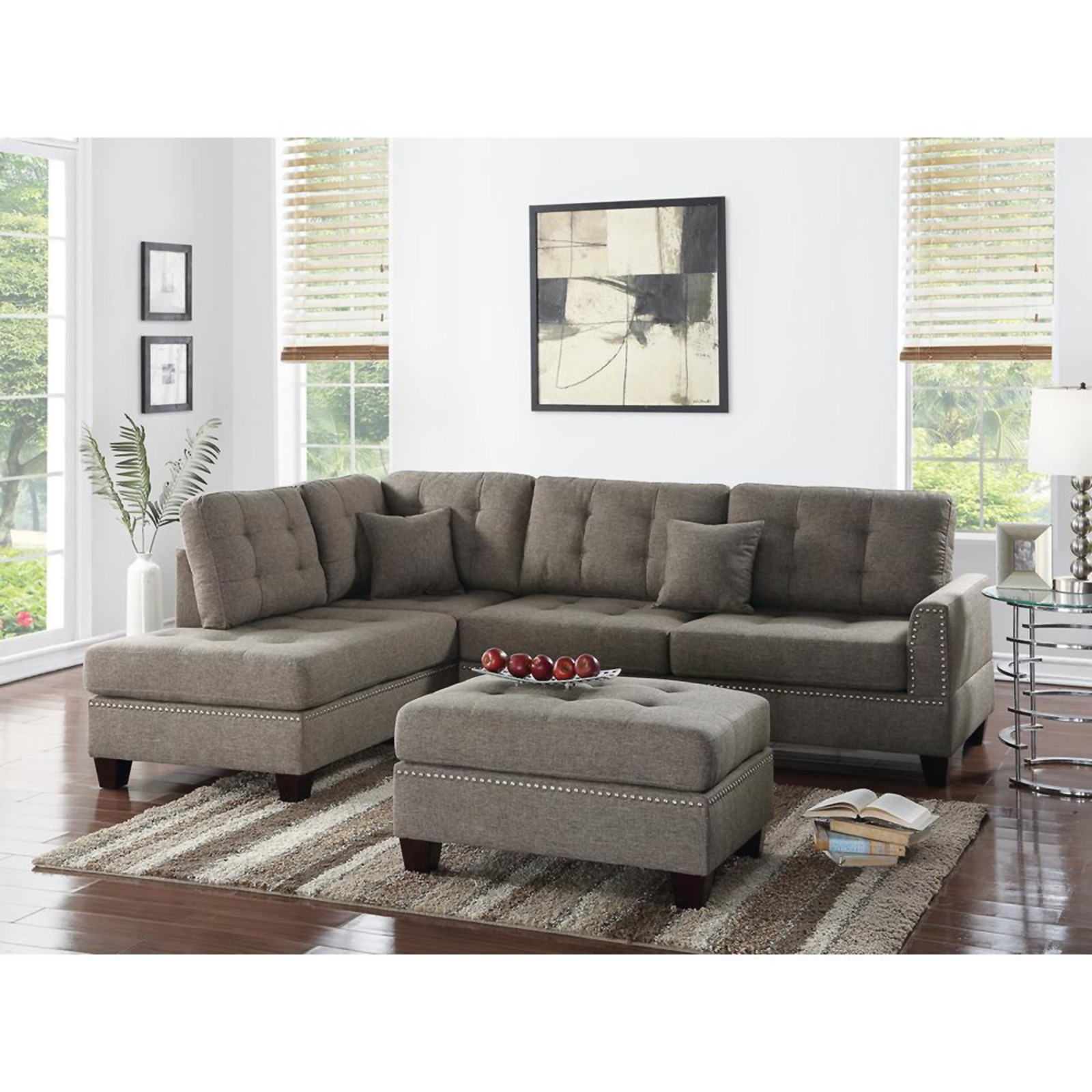 Esofastore 3pc Polyfiber Sectional Sofa Set Coffee
