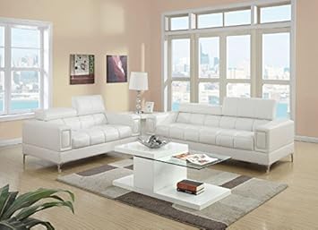 Poundex F7240 Bobkona Sierra Bonded Leather 2 Piece Sofa And Loveseat Set White