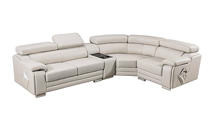 American Eagle Furniture Daphne Collection Modern Top Grain Leather Sectional Sofa With Chaise On Right Adjustable Headrests Light Gray