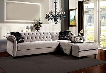 Luisa Traditional Grey Fabric Upholstered Chesterfield Reversible Sectional Sofa