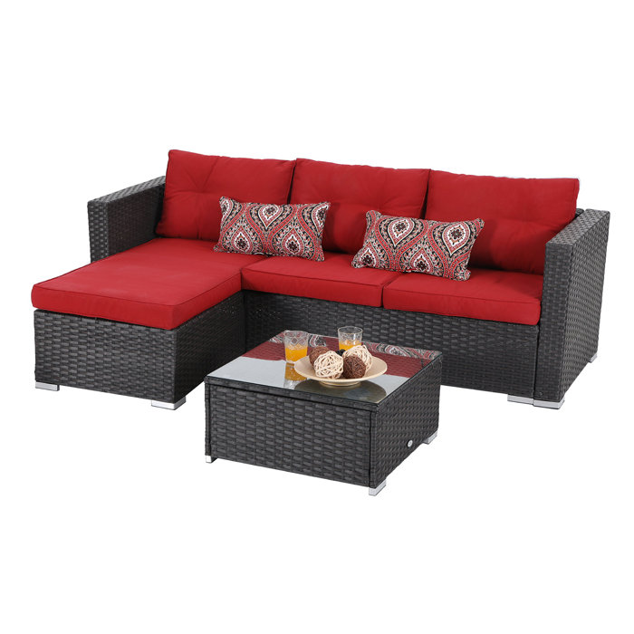 Steward Outdoor 3 Piece Rattan Sectional Sofa Set With Cushions