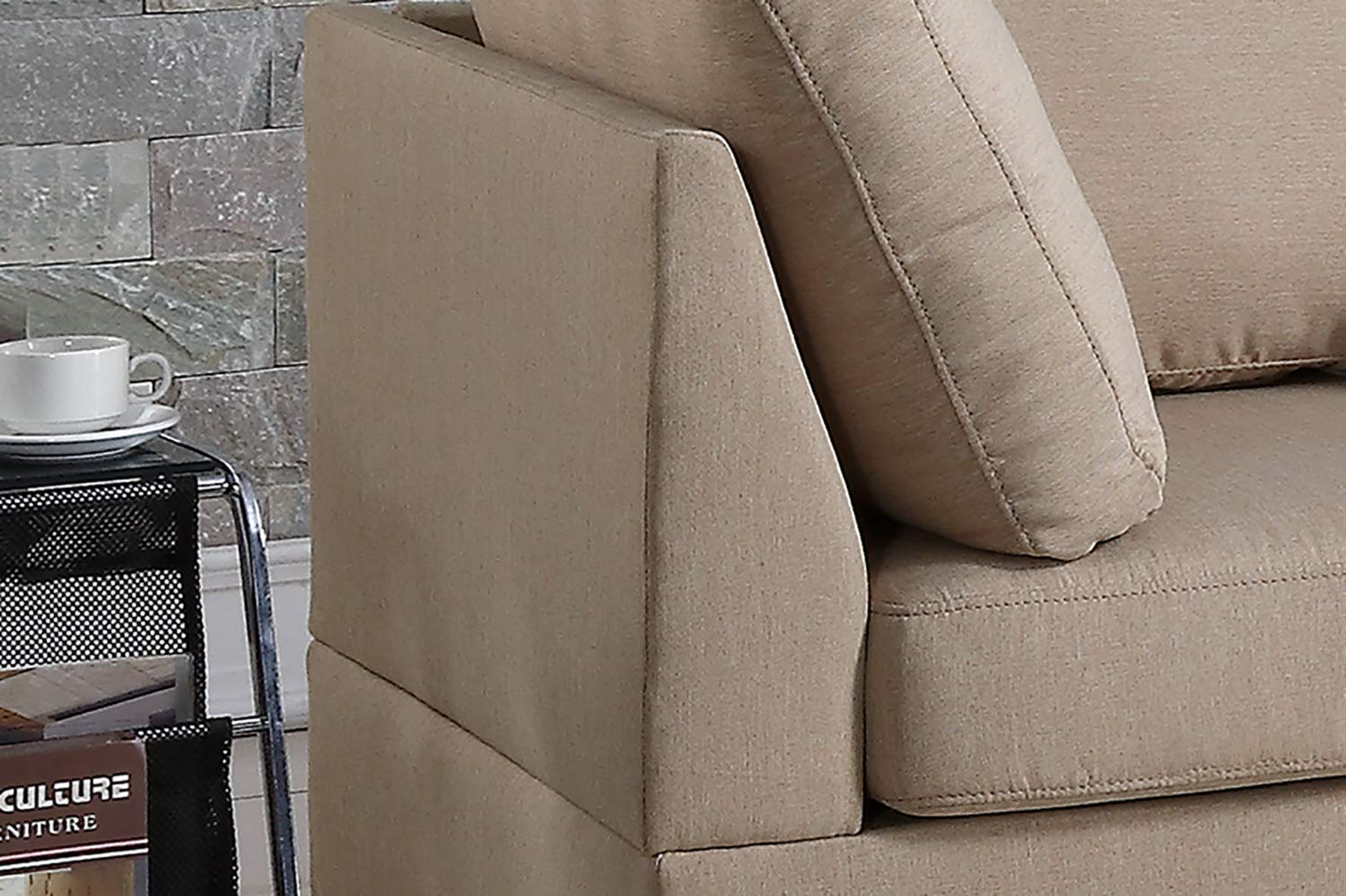 Poundex F7605 Bobkona Dervon Linen Like Left Or Right Hand Chaise Sectional Set With Ottoman Sand