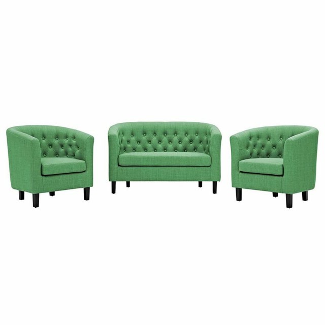 Modway Prospect 3 Piece Tufted Sofa Set In Green