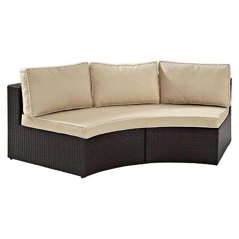 Catalina Outdoor Wicker Round Sectional Sofa Sand Crosley