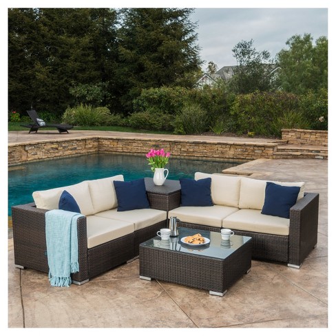 Caspian 6 Piece Outdoor Wicker Sectional Sofa Set With Water