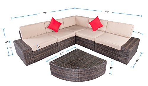 Suncrown Outdoor Furniture 6 Piece Patio Sofa And Wedge Table Set All Weather Brown Wicker With Washable Seat Cushions And Glass Coffee Table