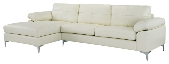 Contemporary L Shape Leather Sectional Sofa Left Chaise Beige