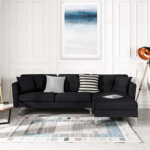Black Upholstered Linen Sectional Sofa Couch Modern L Shape Sectional Sectional Sofas And Couches Sofa Couch With Chaise For Small Large Living