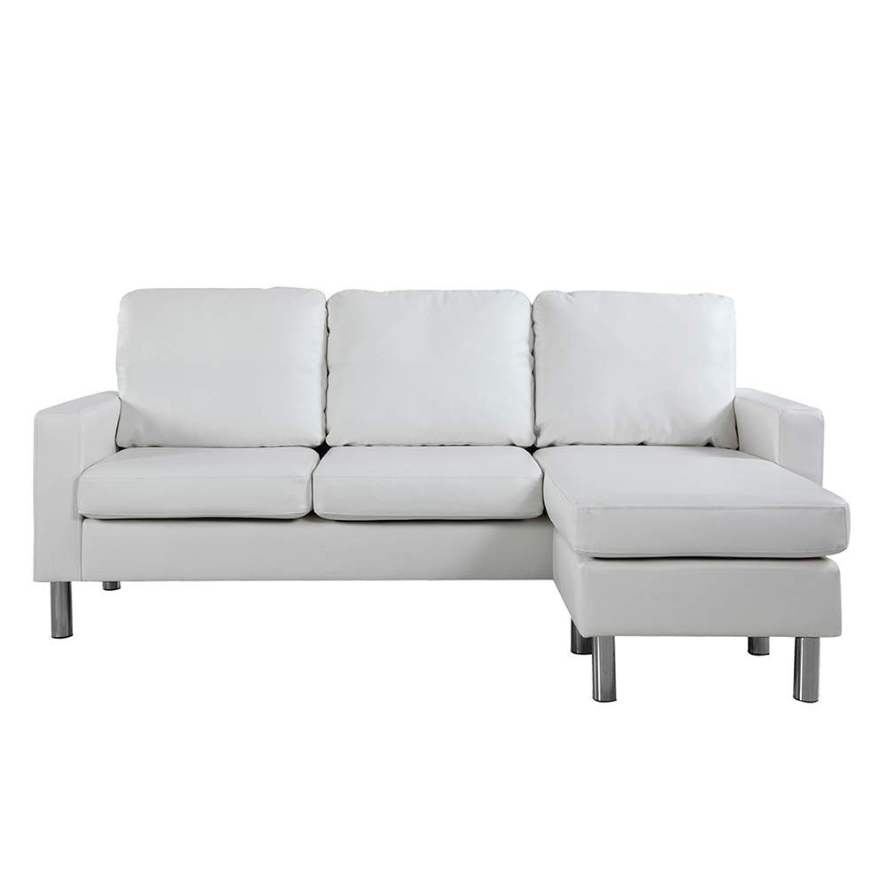 Configurable Sectional Sofa Convertible L Shape Couch In Bonded Leather Upholstery For Small Space White
