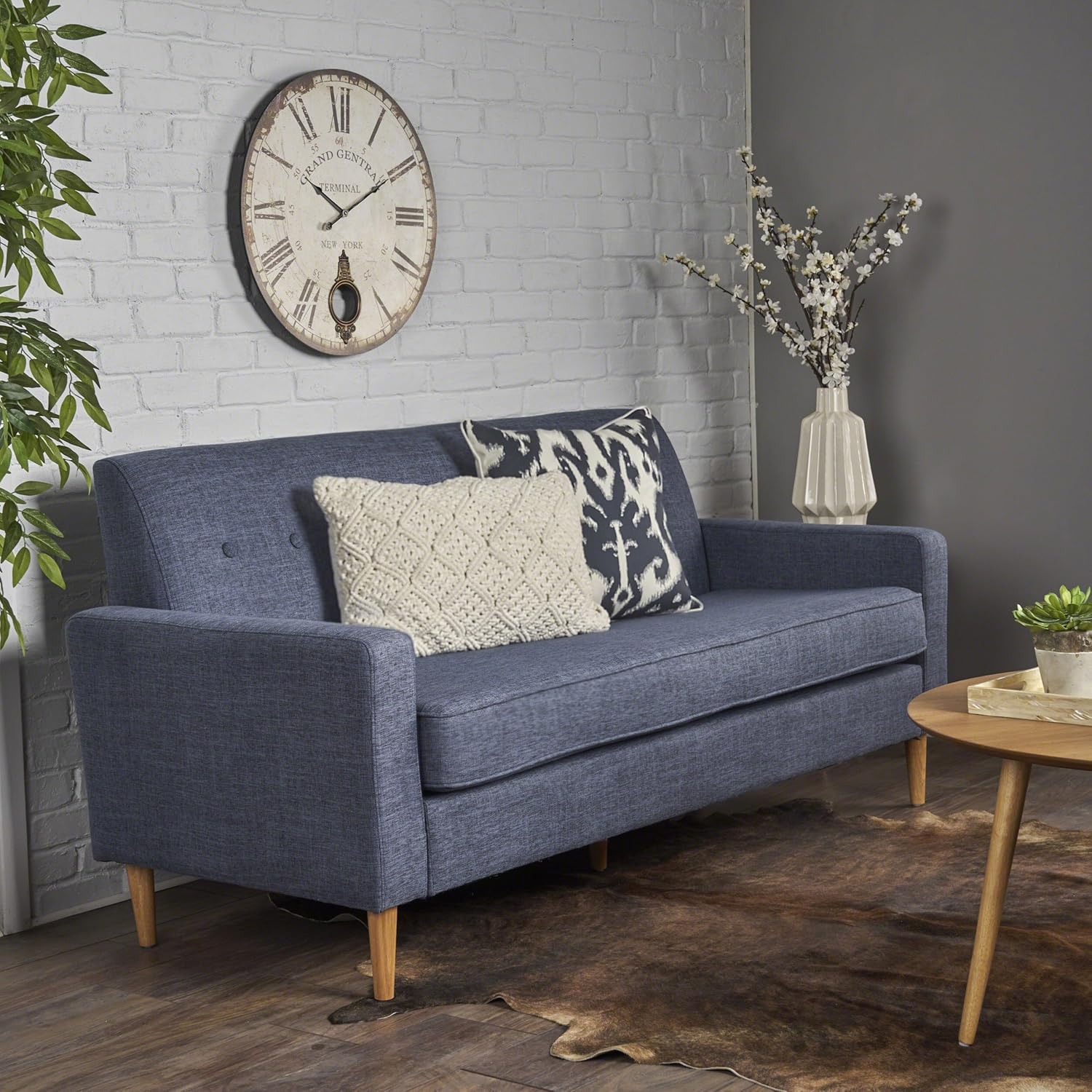 Christopher Knight Home Stratford Mid Century Modern Dark Blue Fabric 3 Seater Sofa
