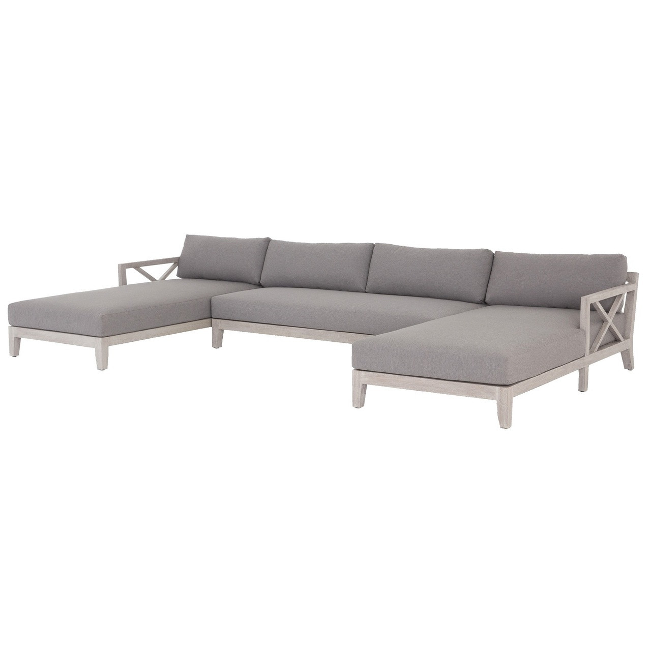 Huntington Grey Teak 3 Pc U Shaped Outdoor Sectional