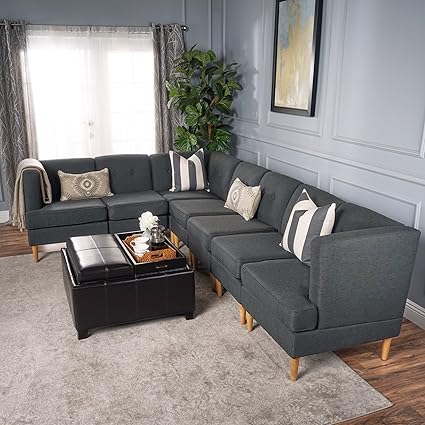 Gdf Studio 6 Piece Samuel Mid Century Tweed Fabric Sectional Sofa Set Dark Blue