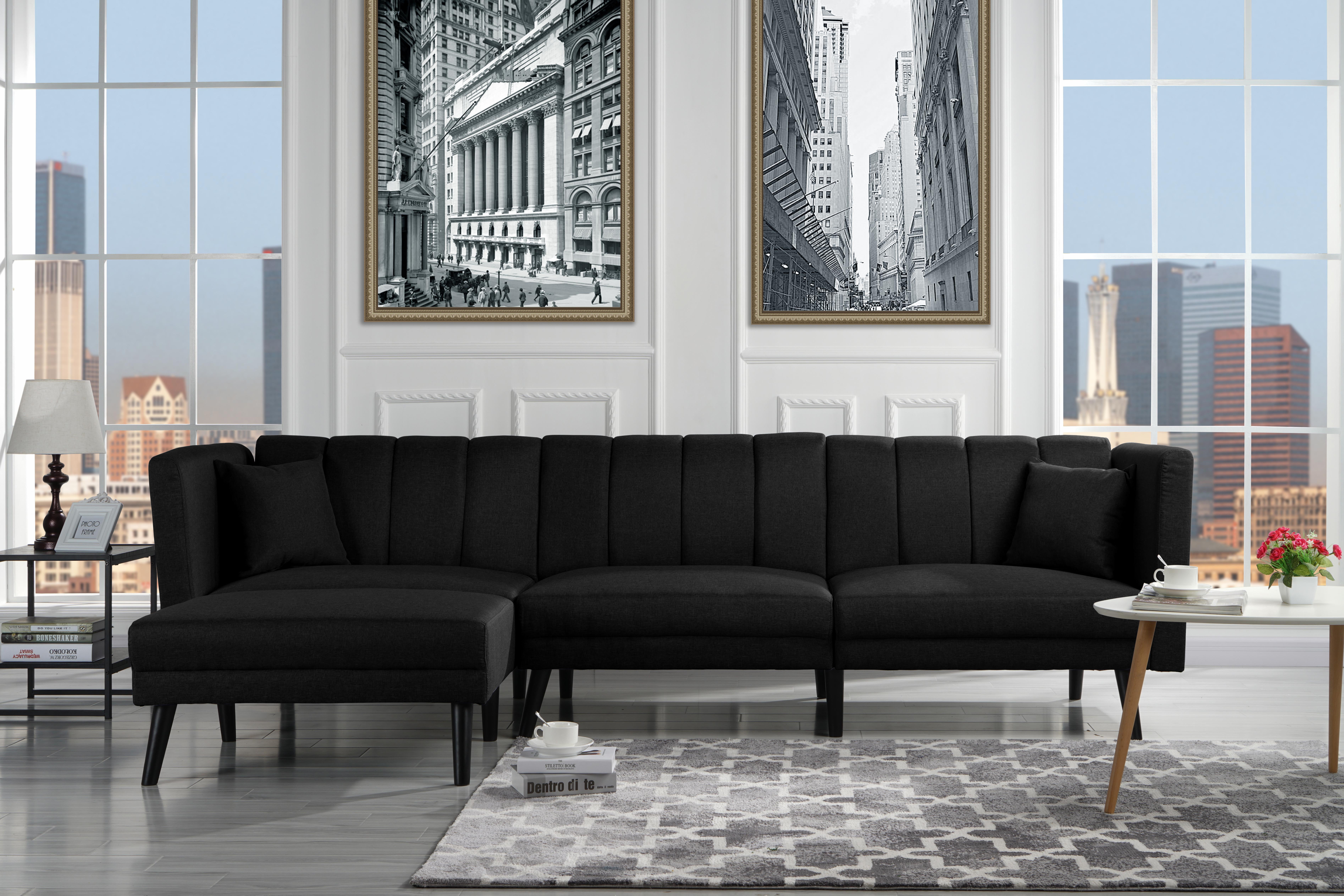 Mid Century Style Sectional Couch Sleeper Futon Reclining Black Walmart Com