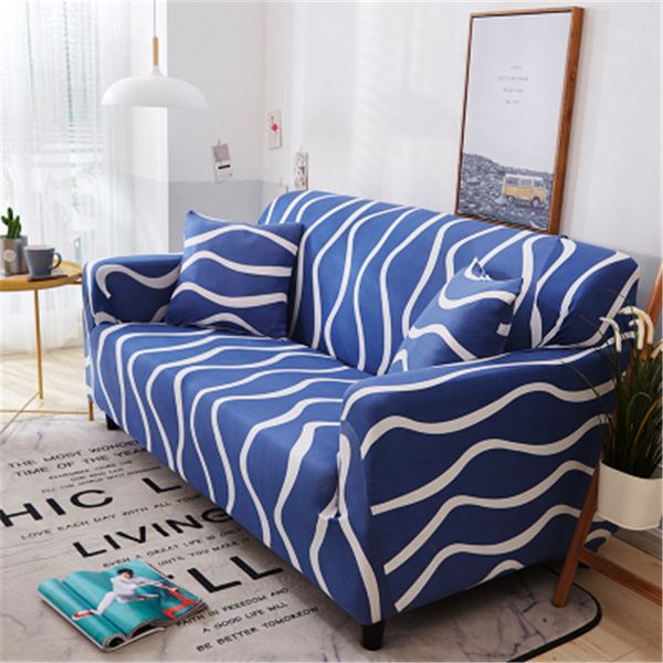 New Fashion Elastic Sofa Covers Blue Waves Pattern Slipcover Washable Universal Sectional Slipcover Pillowcase Cartoon Slipcovers For Dining Room