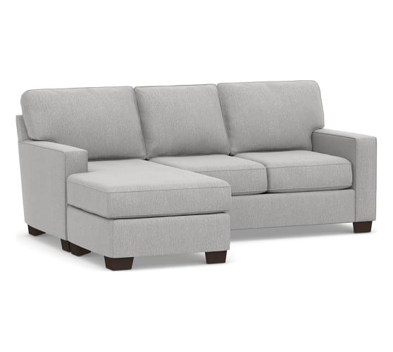 Buchanan Square Arm Upholstered Sofa With Reversible Chaise Sectional Polyester Wrapped Cushions Sunbrella Performance Chenille Fog