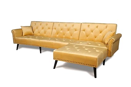 Yellow Sectional Sofa With Chaise Julyfox 900 Lb Heavy Duty 115 Inch Sofa Bed Sleeper W Chaise Velvet Sofa Futon Recliner Back Modern Day Bed W Nail
