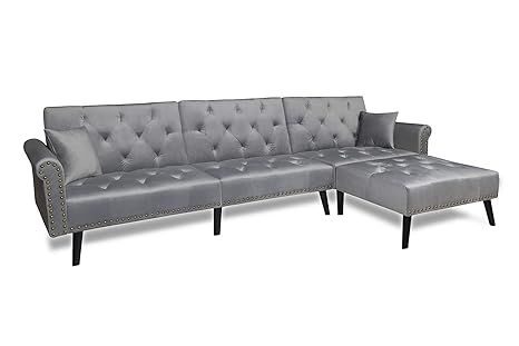 Gray Sectional Sofa Sleeper Bed Julyfox 900 Lb Heavy Duty 115 Inch Velvet Sofa Futon Chaise Diamond Button Tufted Upholstered Modern Day Bed