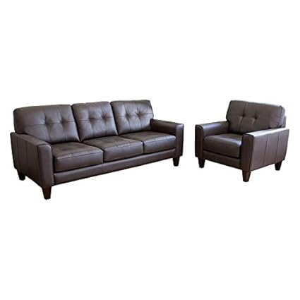 Amazon Com Abbyson Tuscan Leather Sofa Armchair Set Brown