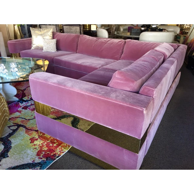 Lavender Mohair And Brass Four Piece Custom Sectional From Hollywood Tv Series