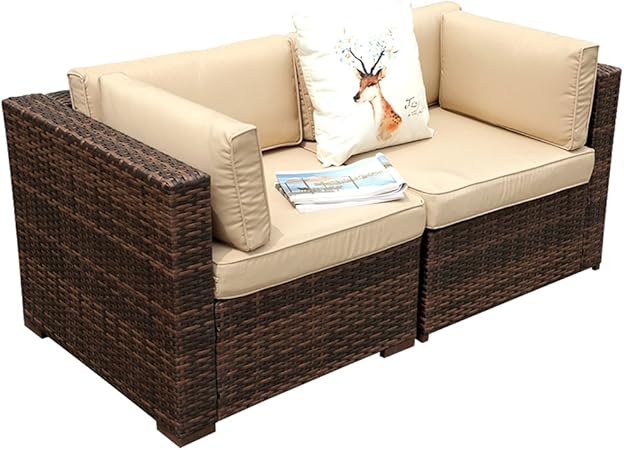 Patiorama Outdoor Loveseat All Weather Rattan Loveseat Dark Brown Wicker Chairs Additional Extra Chairs For Outdoor Sectional Sofa