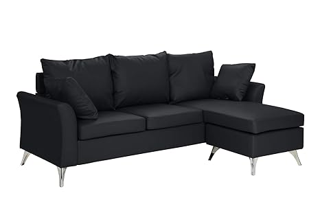 Modern Pu Leather Sectional Sofa Small Space Configurable Couch Black