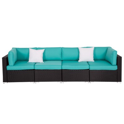 4 Pc Rattan Wicker Sofa Set Sectional Outdoor Patio Cushioned Tiffany Blue Ebay