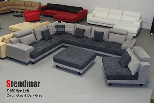 5pc Modern 2 Tone Grey Microfiber Big Sectional Sofa Set S150lg