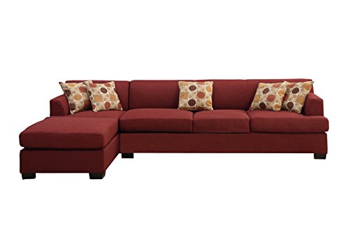 Poundex Bobkona Hudson Blended Linen 2 Piece 4 Seat Reversible Sectional Sofa Dark Red