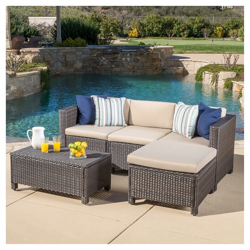 Puerta 5pc Wicker Sectional Sofa Set With Cushions Christopher Knight Home