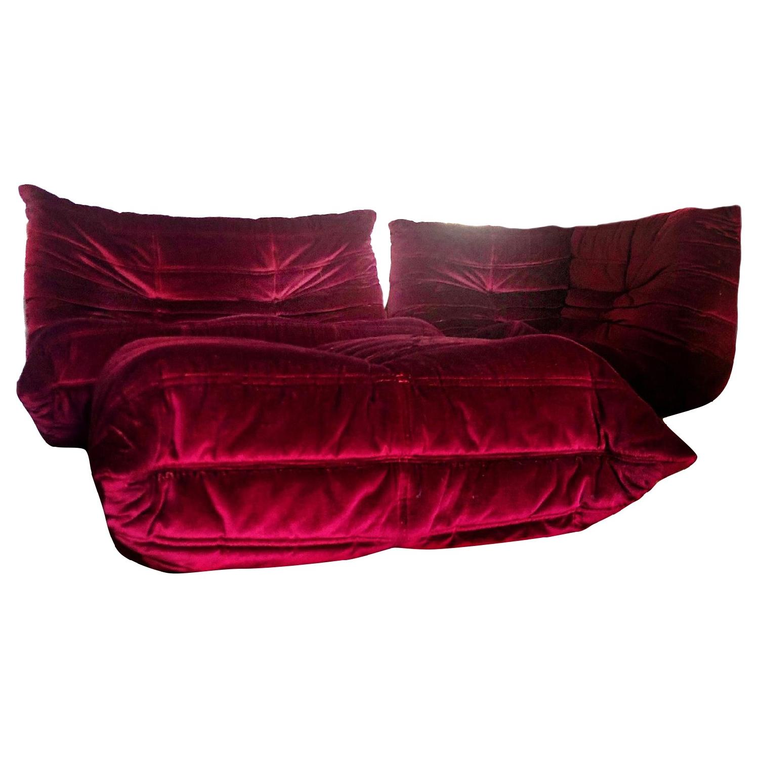 Ligne Roset Togo Sectional Sofa In Deep Red Silk Velvet