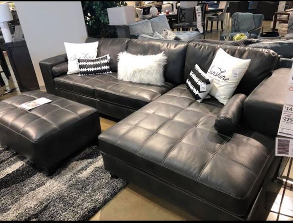 Ashley Furniture 87701 17 66 08 3 Pc Nokomis Charcoal Faux Leather Sectional Sofa Set And Ottoman