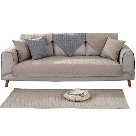 Ostepdecor 100 Cotton Quilted Sectional Armrest Backrest Covers For Sofa Loveseat Khaki 2pcs 36 X 36 90 X 90cm