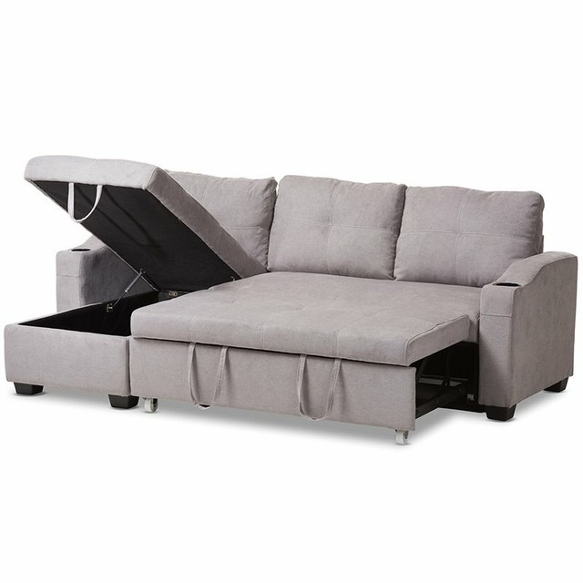 Baxton Studio Lianna Sleeper Sectional In Light Gray