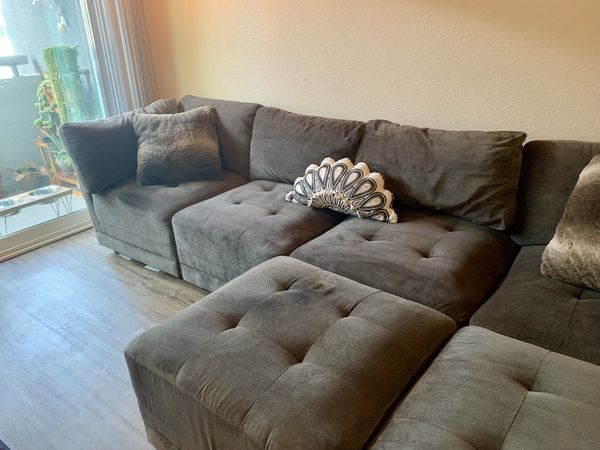 Like New Grey Suede Modular Sectional Sofa For Sale In