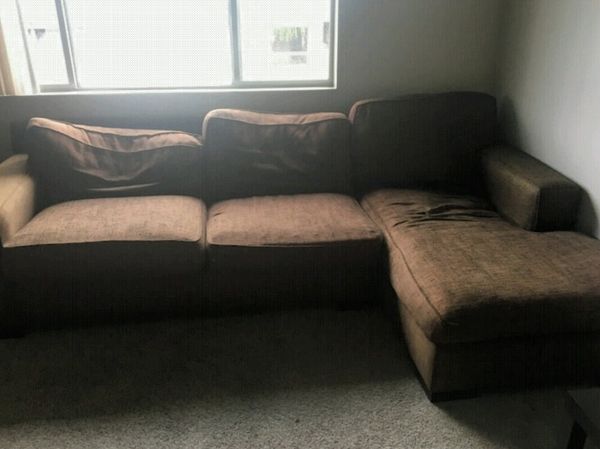Brown Tweed Like Fabric L Shape Chaise Lounge Sectional