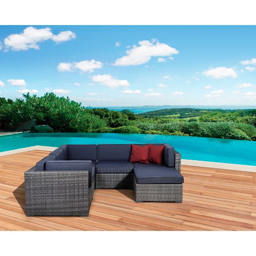 Atlantic Aventura 6 Piece Outdoor Sofa Sectional Gray With Gray Cushions Walmart Com