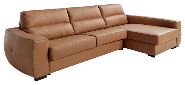 Odin Caramel Leather Gel L Shape Sectional With Chaise By