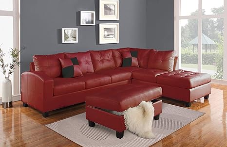 Acme Kiva Red Bonded Leather Reversible Sectional Sofa With 2 Pillows